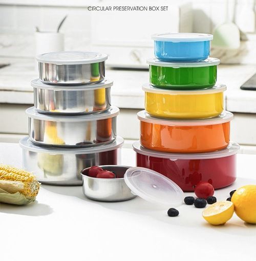 (5 pieces) Stainless steel food storage containers, round kitchen refrigerator food storage containers with lids